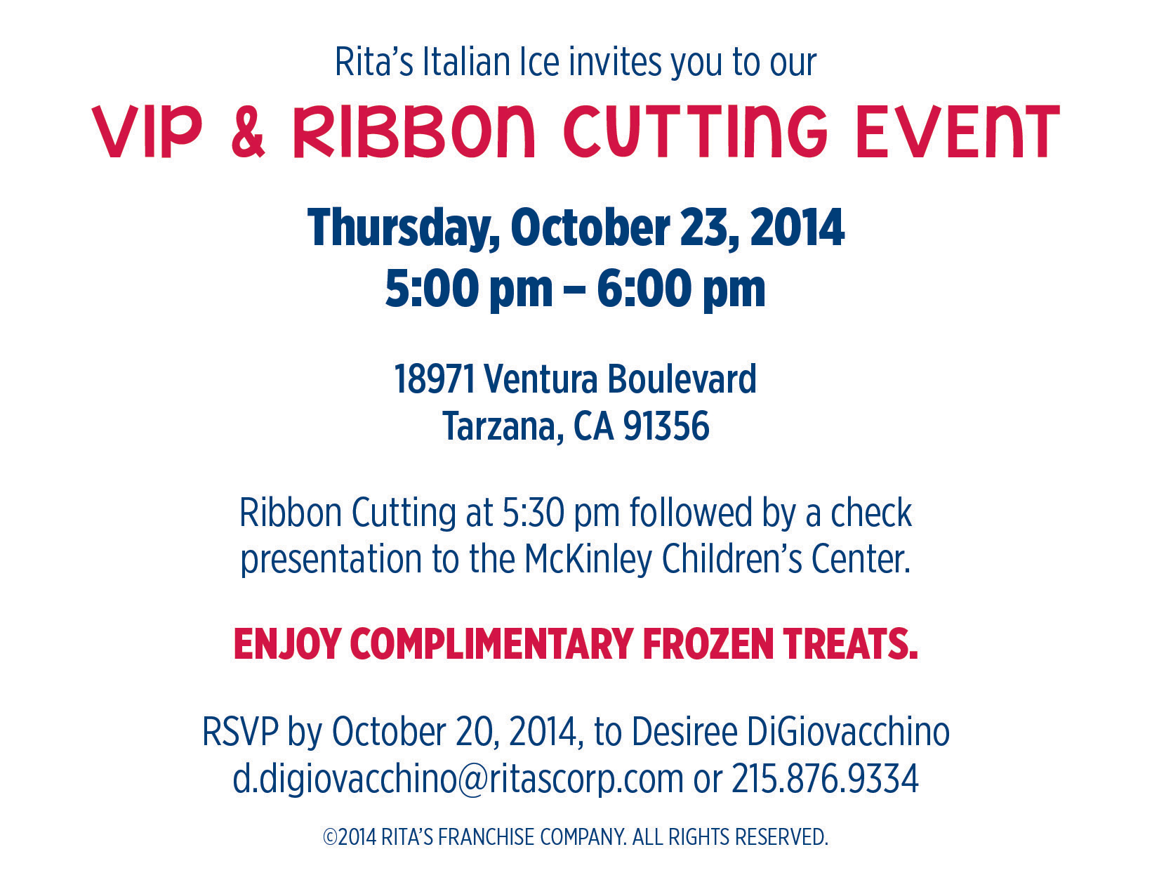 18971 Ventura Blvd.Tarzana, CA 91356 Web: www.ritasfranchise.com/tarzana