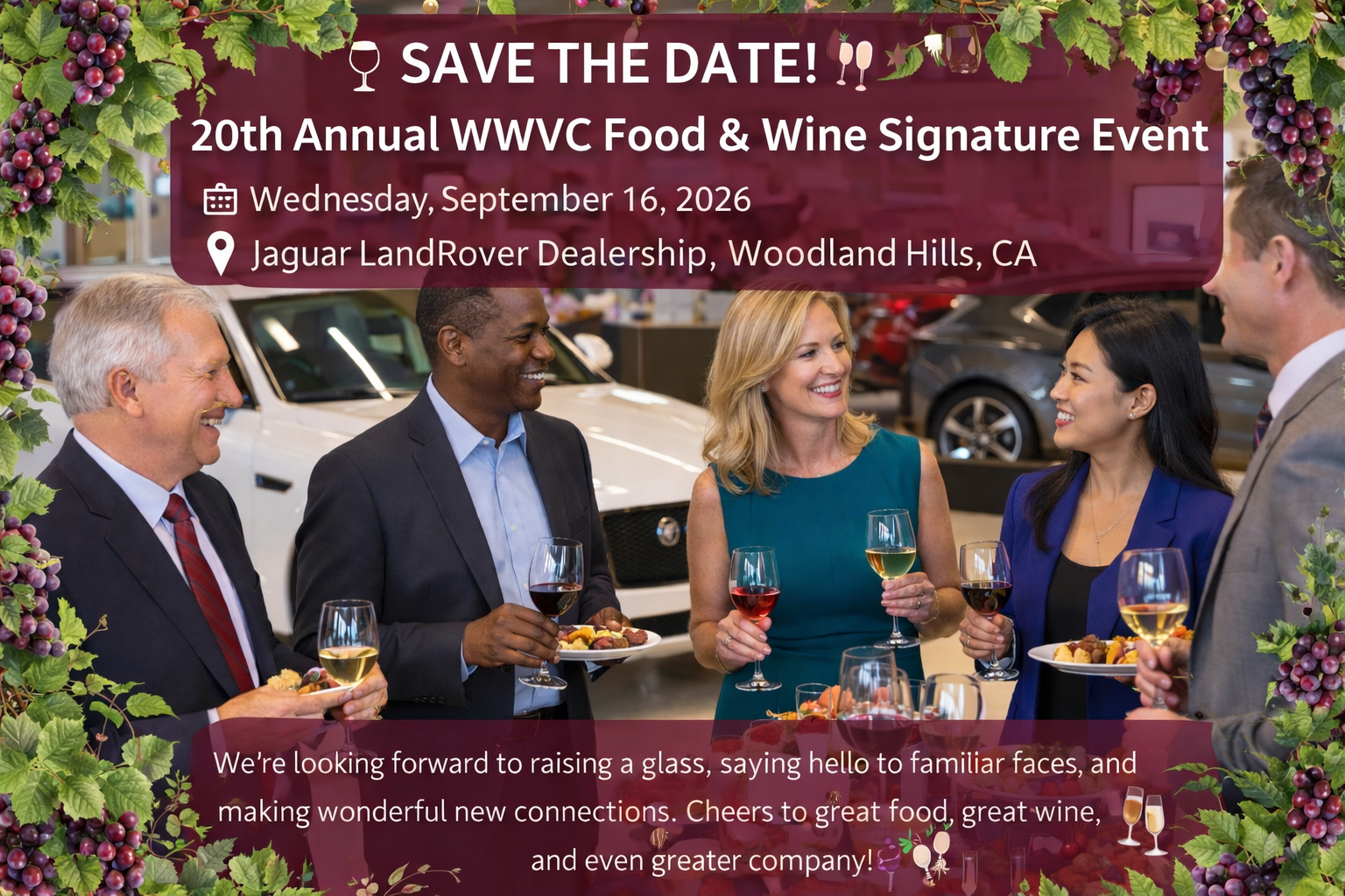 Join us for an unforgettable evening filled with delicious tastings from local restaurants, exceptional wines, exciting networking, and the elegance of luxury automobiles all under one roof. This signature event is a favorite tradition that brings together business leaders, community members, and friends for a night of flavor, fun, and connection.