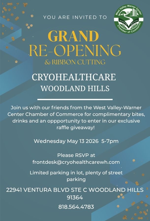 You Are Invited-Cryohealthcare Woodland Hills Ribbon Cutting-Wednesday, May 13th